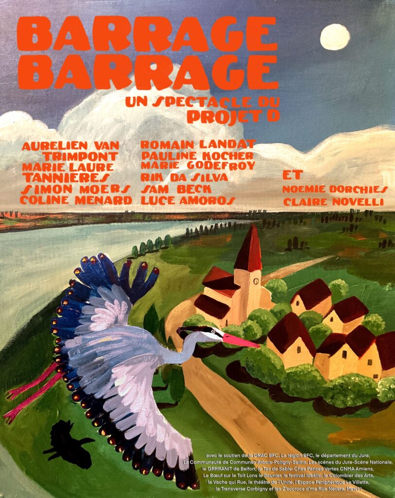 Ce sont les histoires croisées de plusieurs personnages, aux alentours d’un barrage. L’histoire de plusieurs truites, et quelques perches qui nagent au fond d’un lac artificiel, et d’oiseaux qui nous font traverser l’océan et le temps. On s’attend à un thriller bien construit quand, au fur et à mesure, on est plongé¯e dans les questionnements et les bouillonnements de cell·eux qui racontent. Comment construire un spectacle aujourd’hui, en tant qu’observatuer·ice de nos propres dérives? C’est l’une des grandes question qui anime le collectif et qui tire un fil sur lequel perlent les gouttes des luttes passées et futures, entre une histoire qui se raconte et la déconstruction onirique d’un univers en chute.