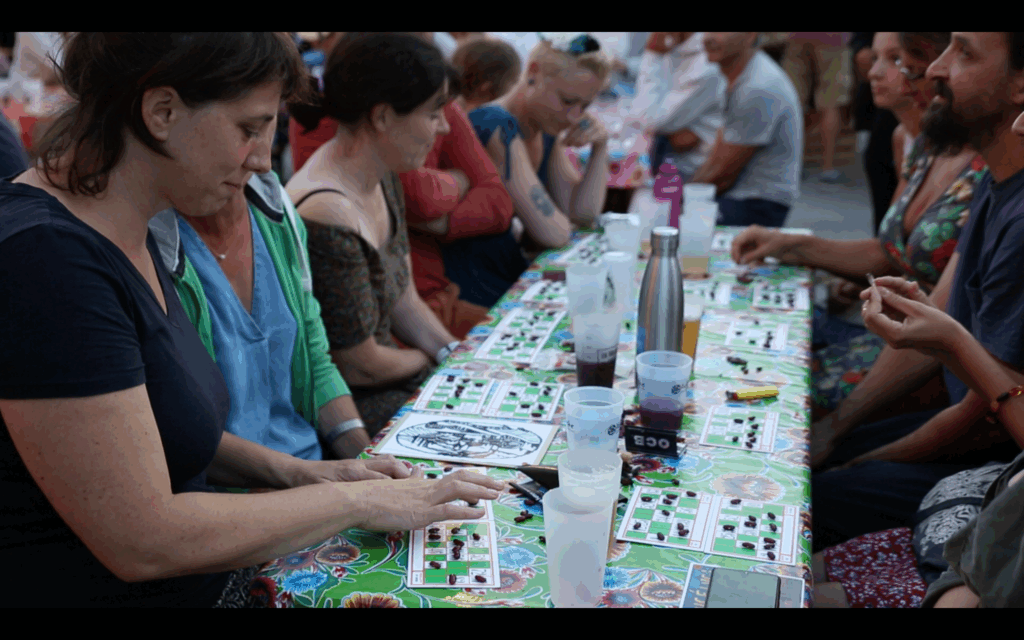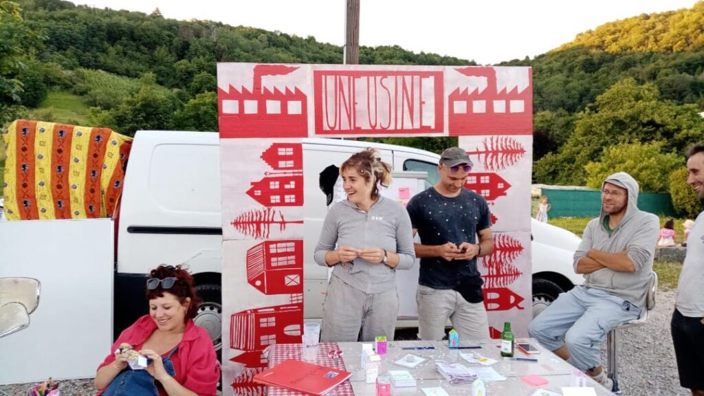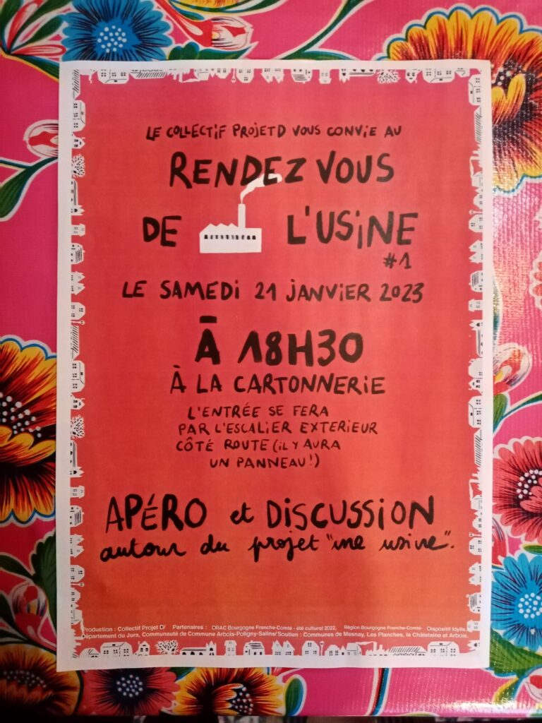 Le 13 juillet 2023, Projet D organise une soirée à la cartonnerie de Mesnay, ouverte à tous.tes les habitant.es du village. Cette soirée s’inscrit dans un projet de territoire plus large, intitulé « Une Usine », qui court depuis janvier 2022 et aboutira en octobre 2024. Le Cartobingo arrive au milieu de ce processus de travail, comme une fête partagée avec celles et ceux qui nous accompagnent depuis le début, cell.eux qui nous rejoignent, et toutes les personnes qui voudraient se rapprocher, ne serait-ce qu’une seule soirée.